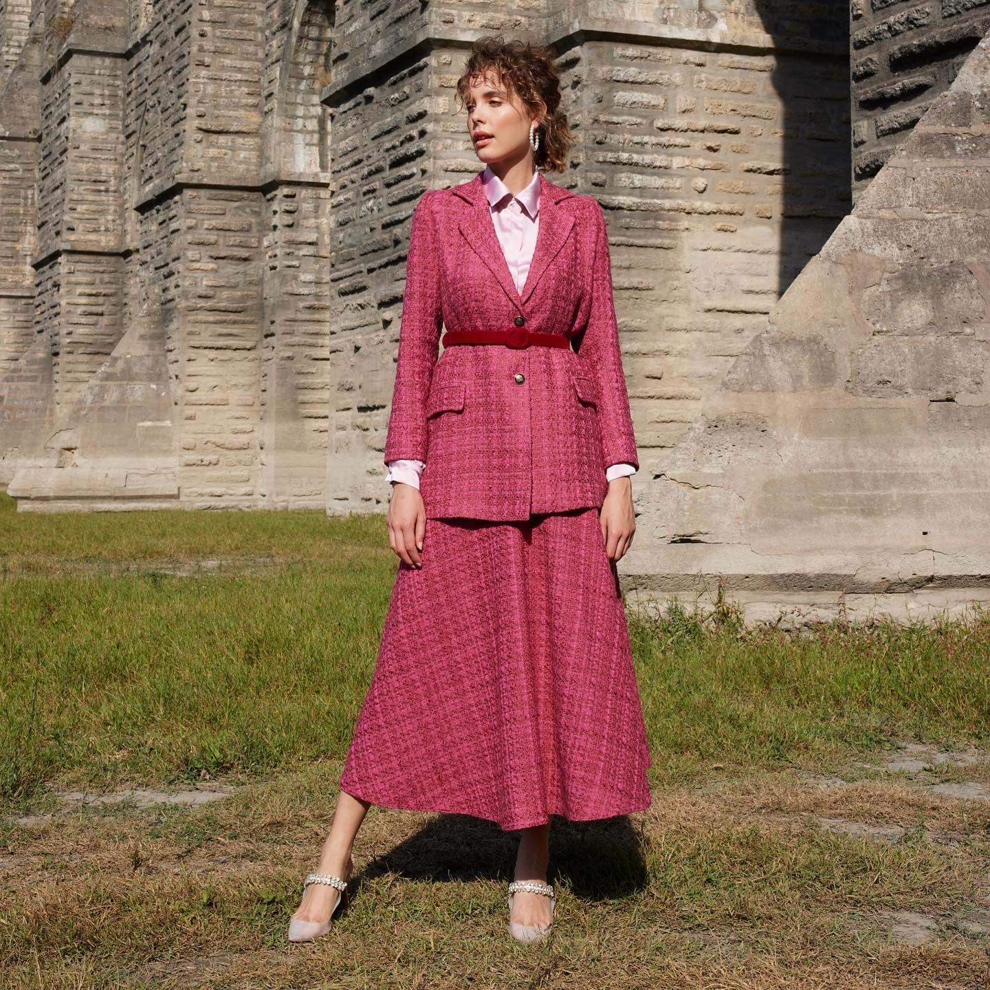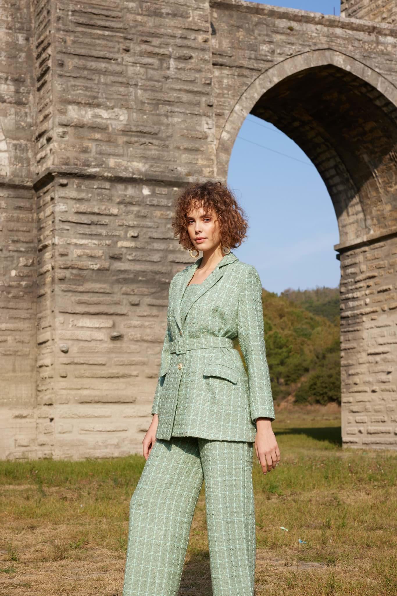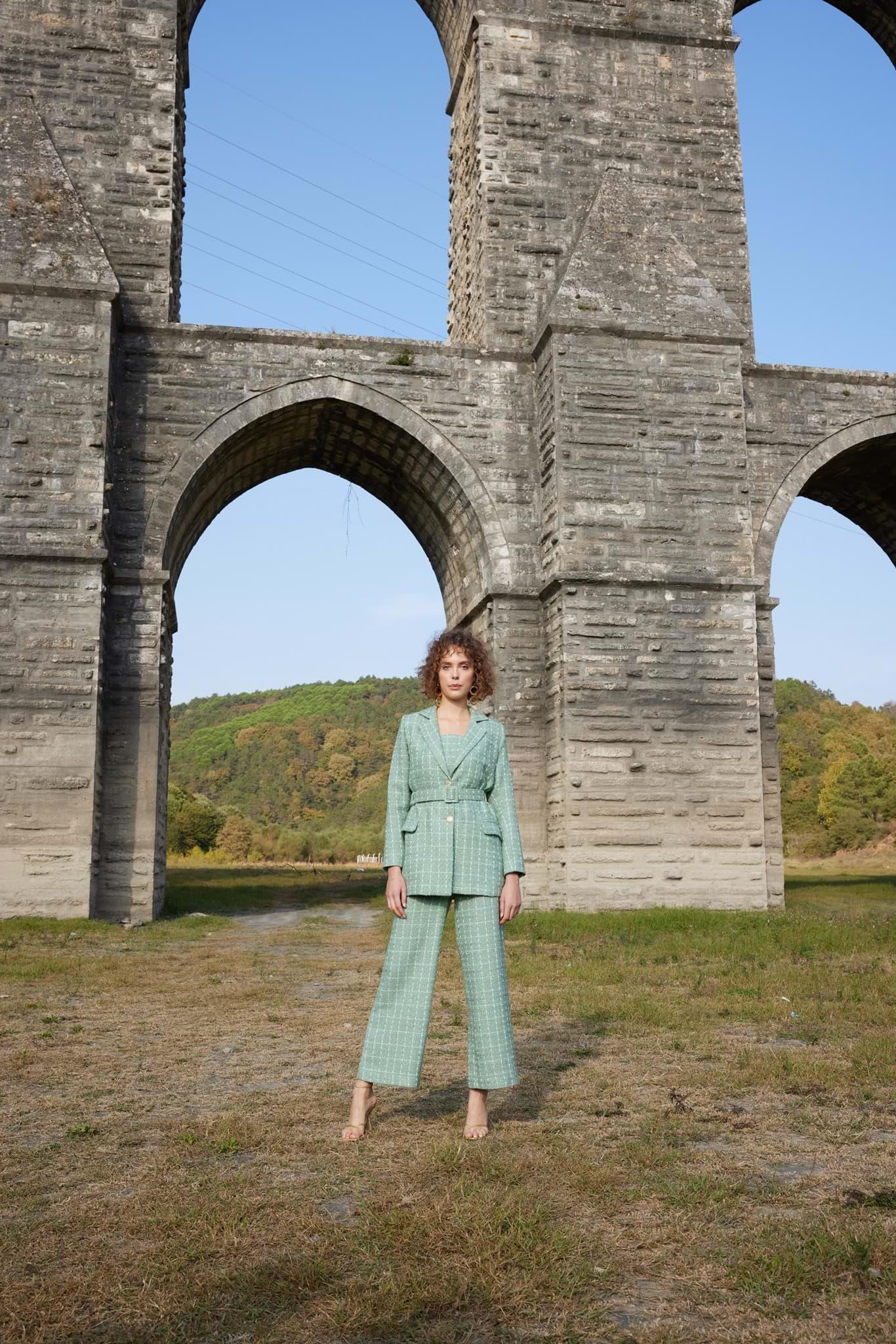 Freda takım ceket etek veya etek yerine pantolon alabilirsiniz + kendi renginde kemer olarak 3 parçadan oluşuyor ceket ipek astarlı düğmeler metaldir.