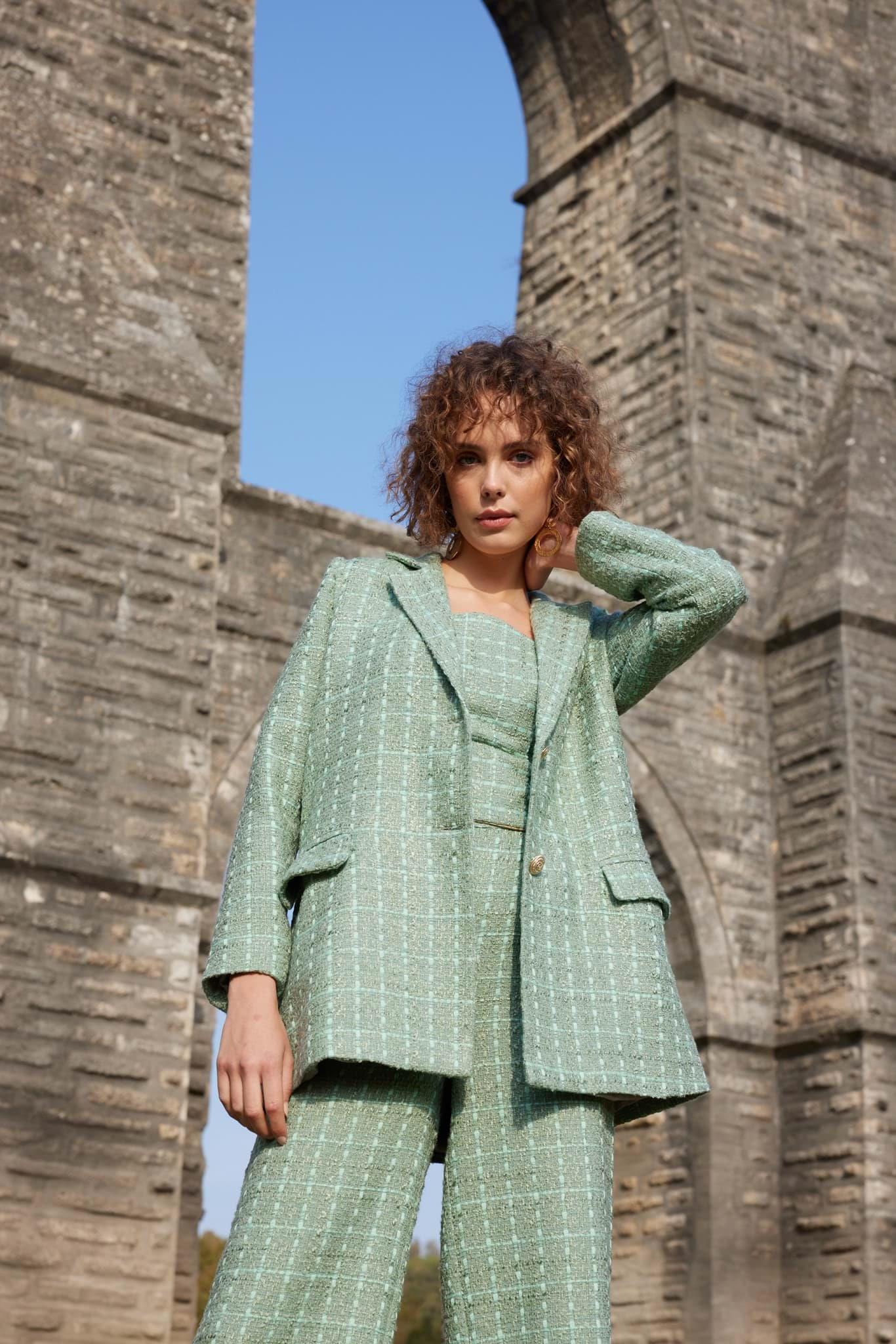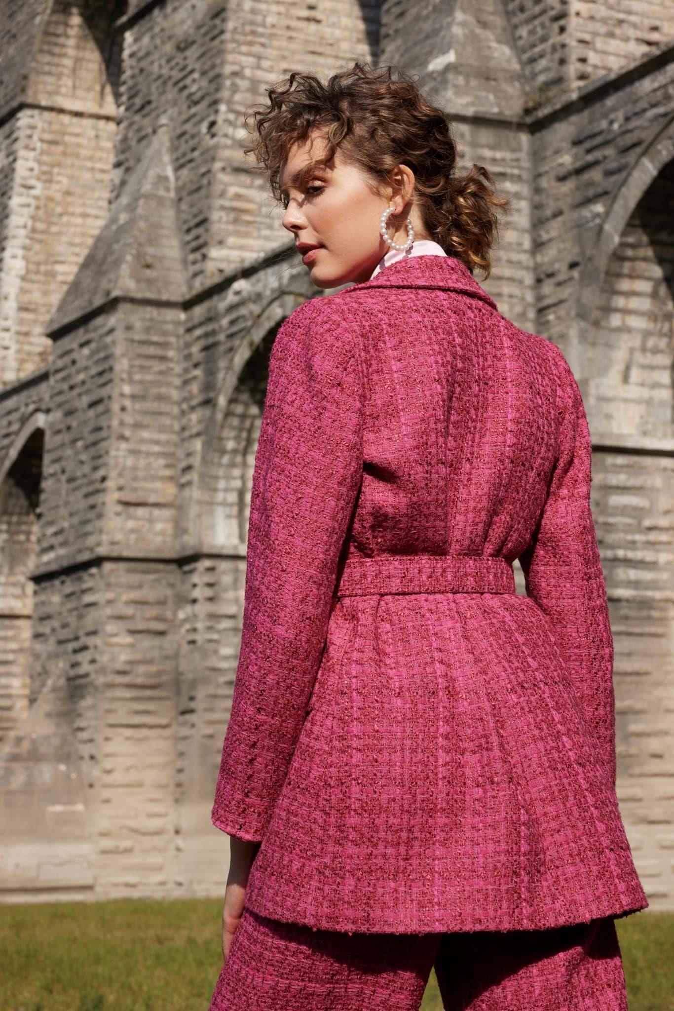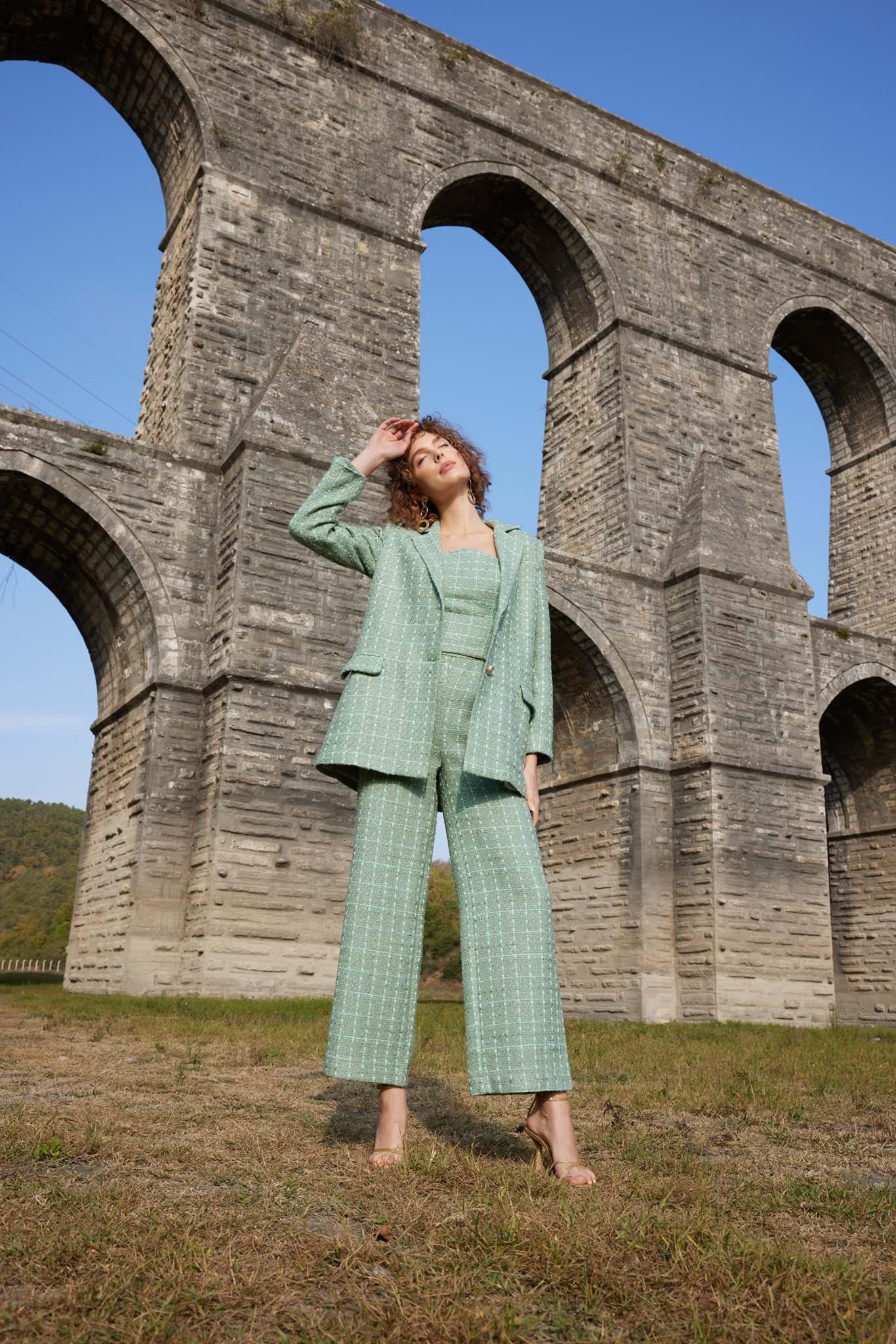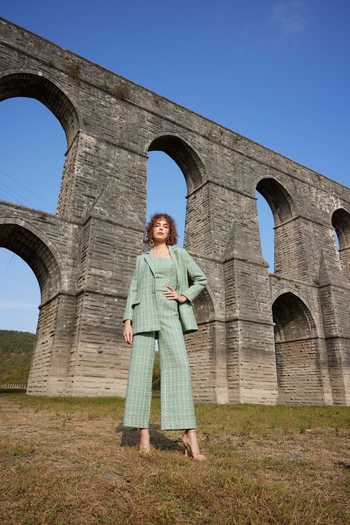 Freda takım ceket etek veya etek yerine pantolon alabilirsiniz + kendi renginde kemer olarak 3 parçadan oluşuyor ceket ipek astarlı düğmeler metaldir.