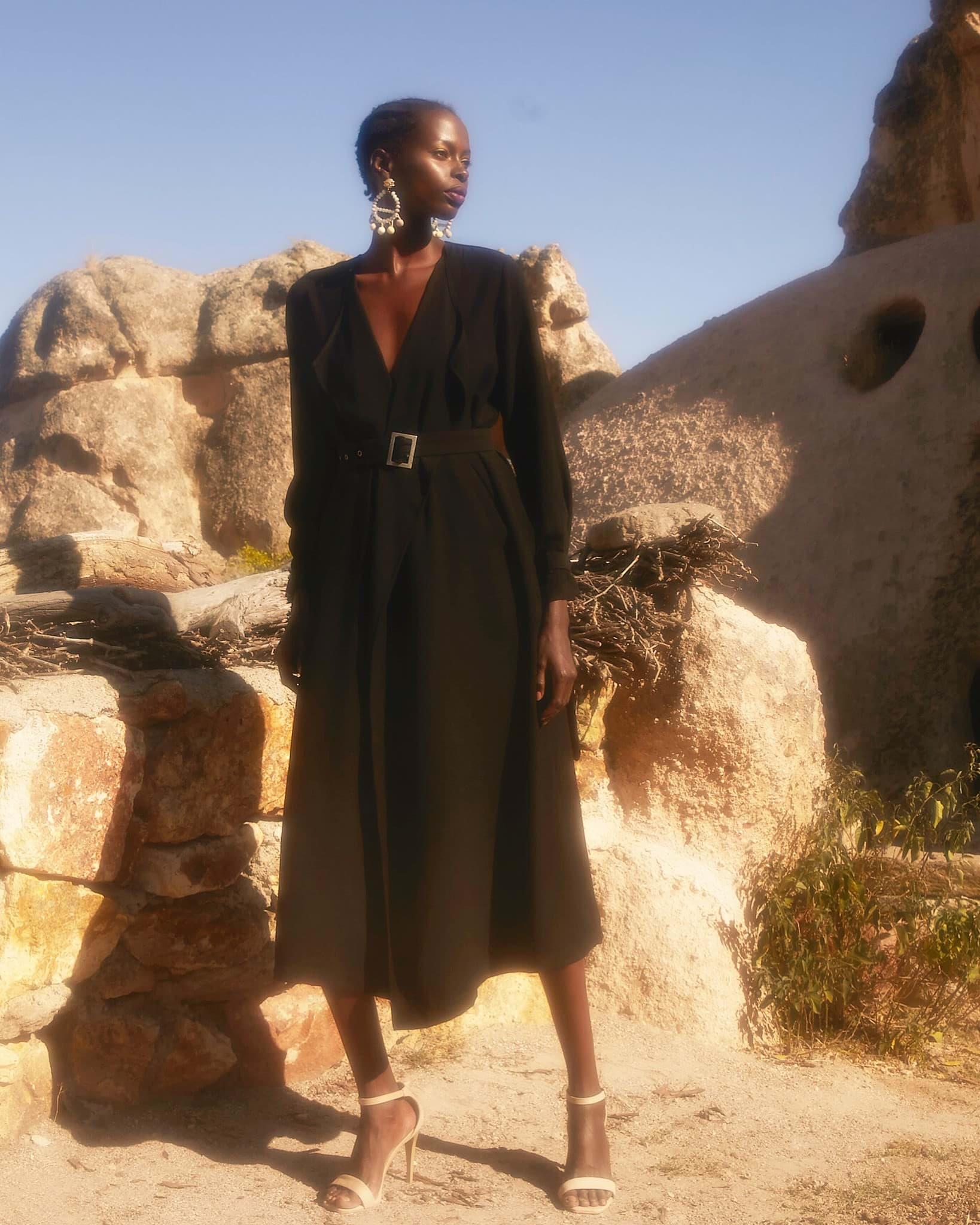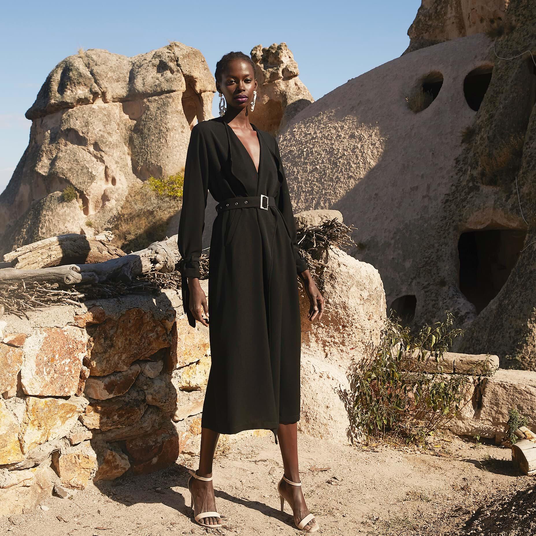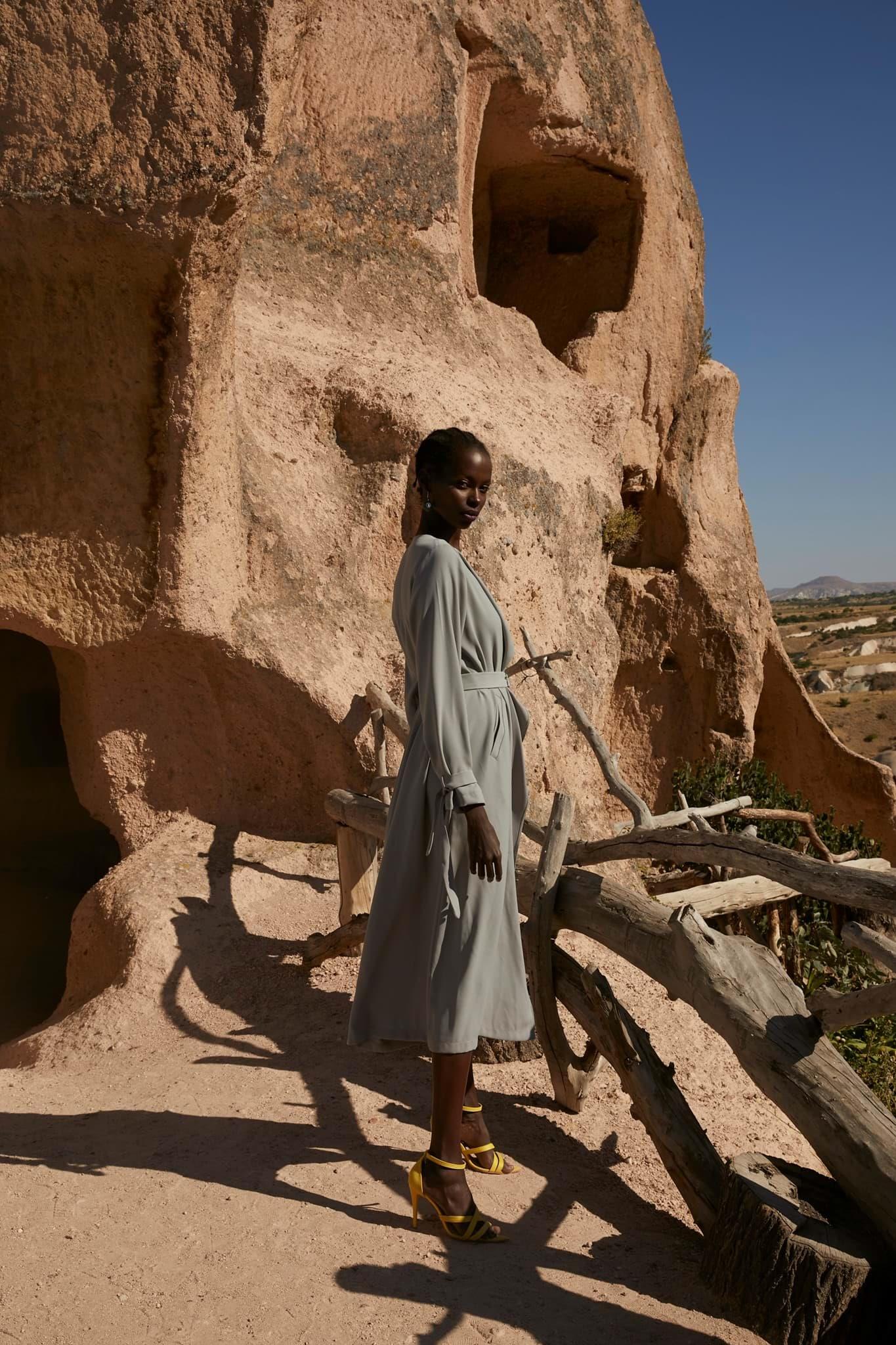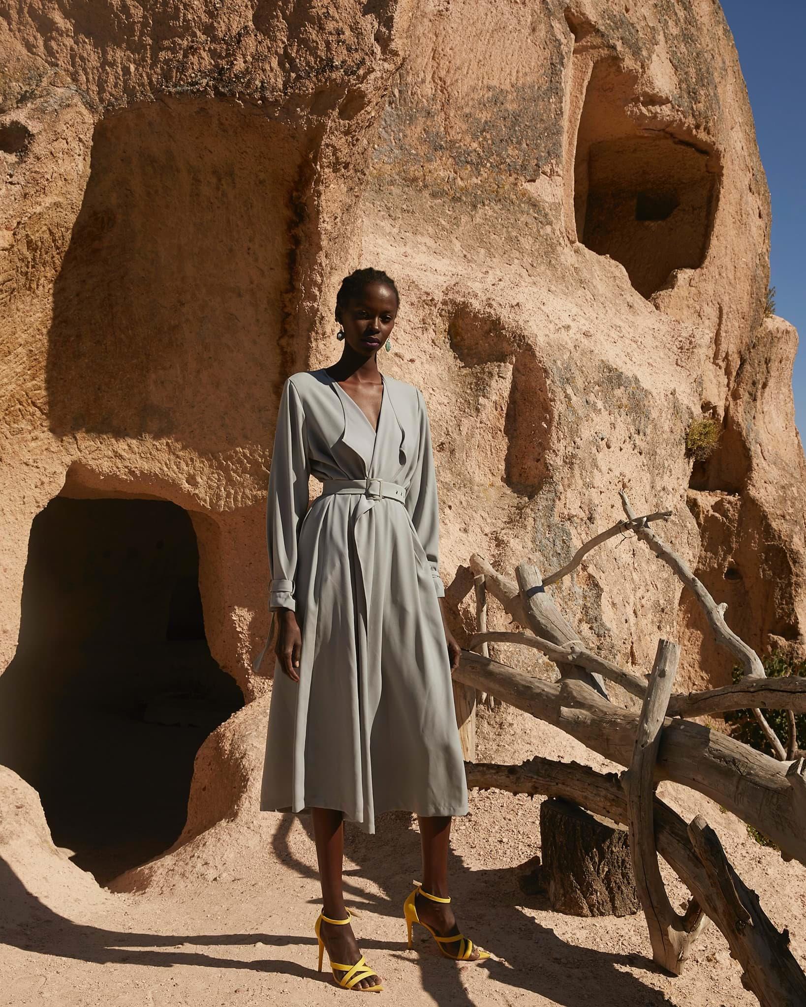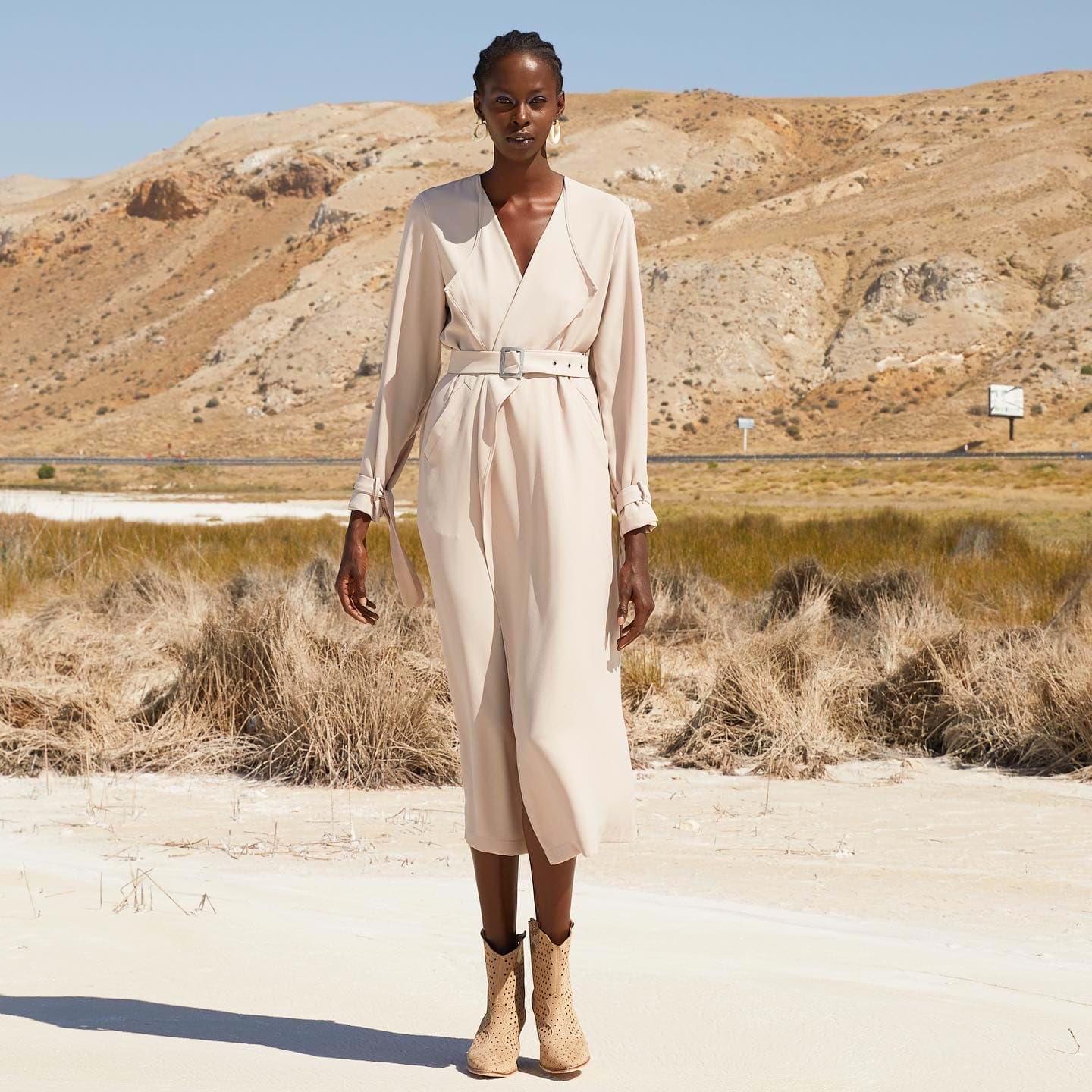 1.Kalite krep kumaştır. Boy 128cm. Ayarlanabilen kemeri mevcuttur. Yanlardan cep detaylıdır. Bahar-Yaz mevsimleri dahil 3 mevsim kullanımına uygundur.