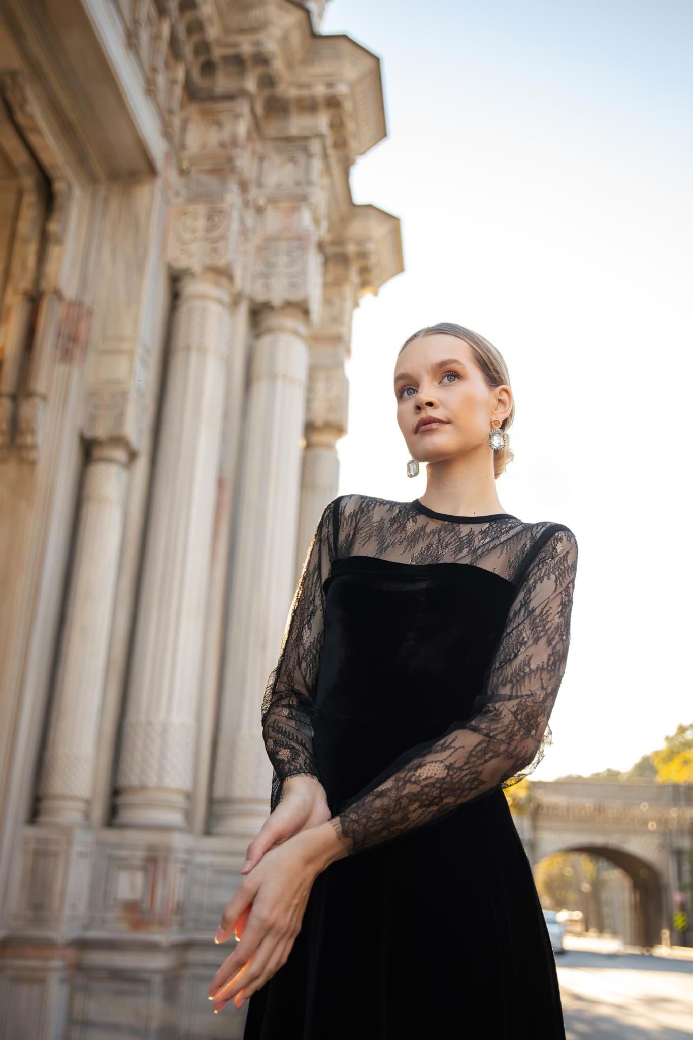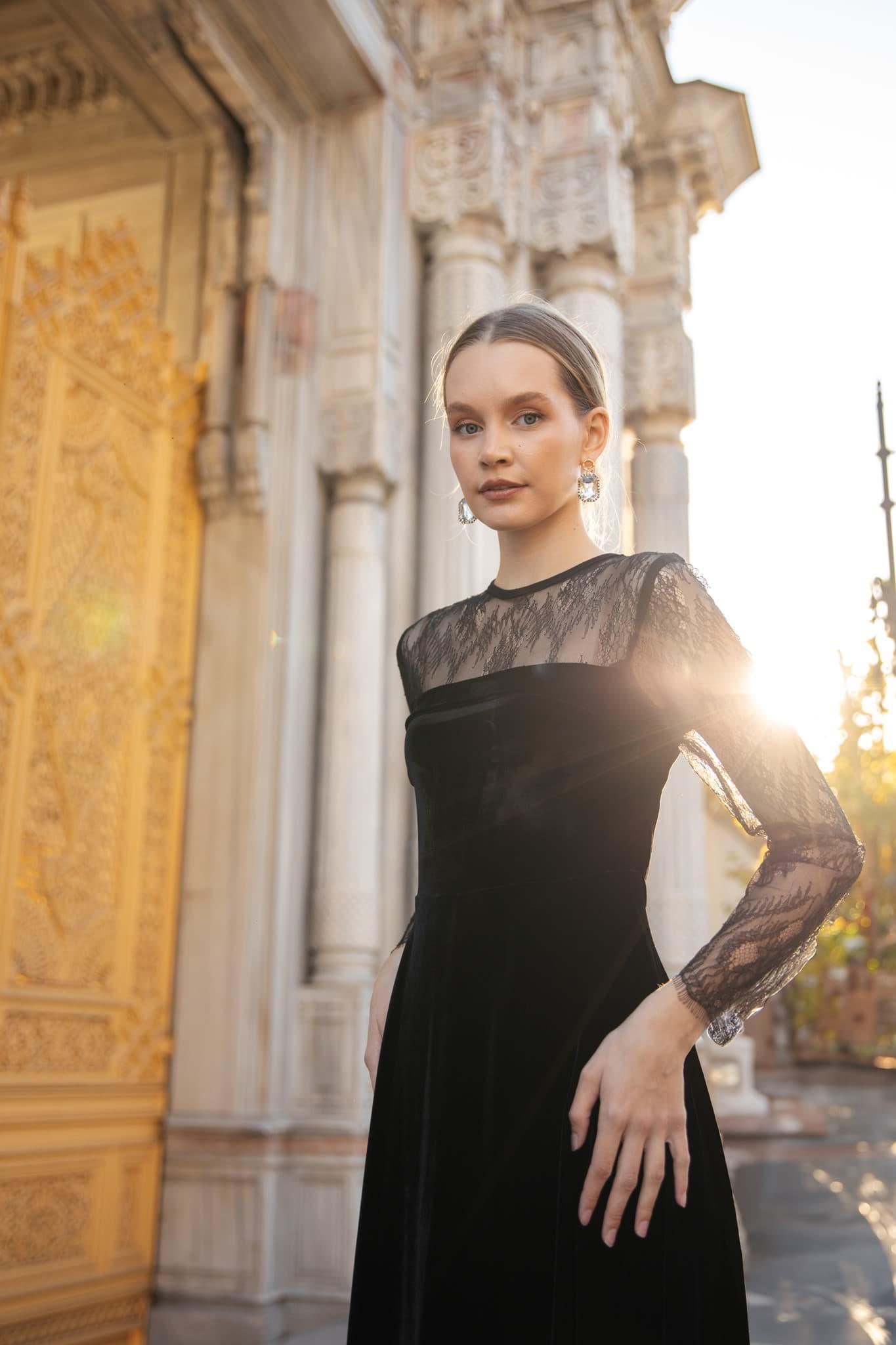 İpek kadife elbise kişiye özel hazırlanmaktadır.