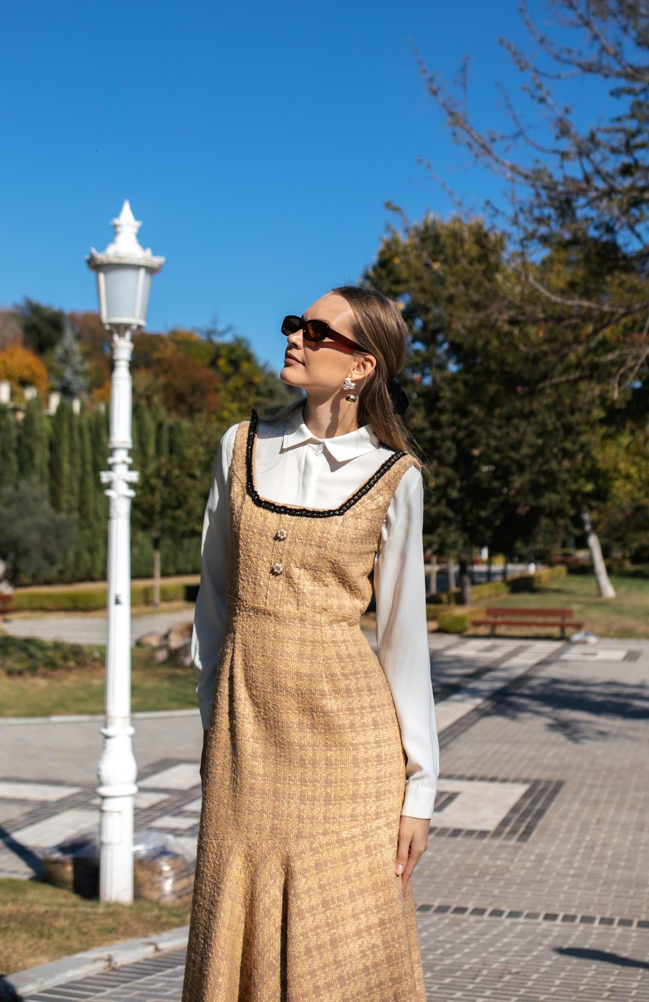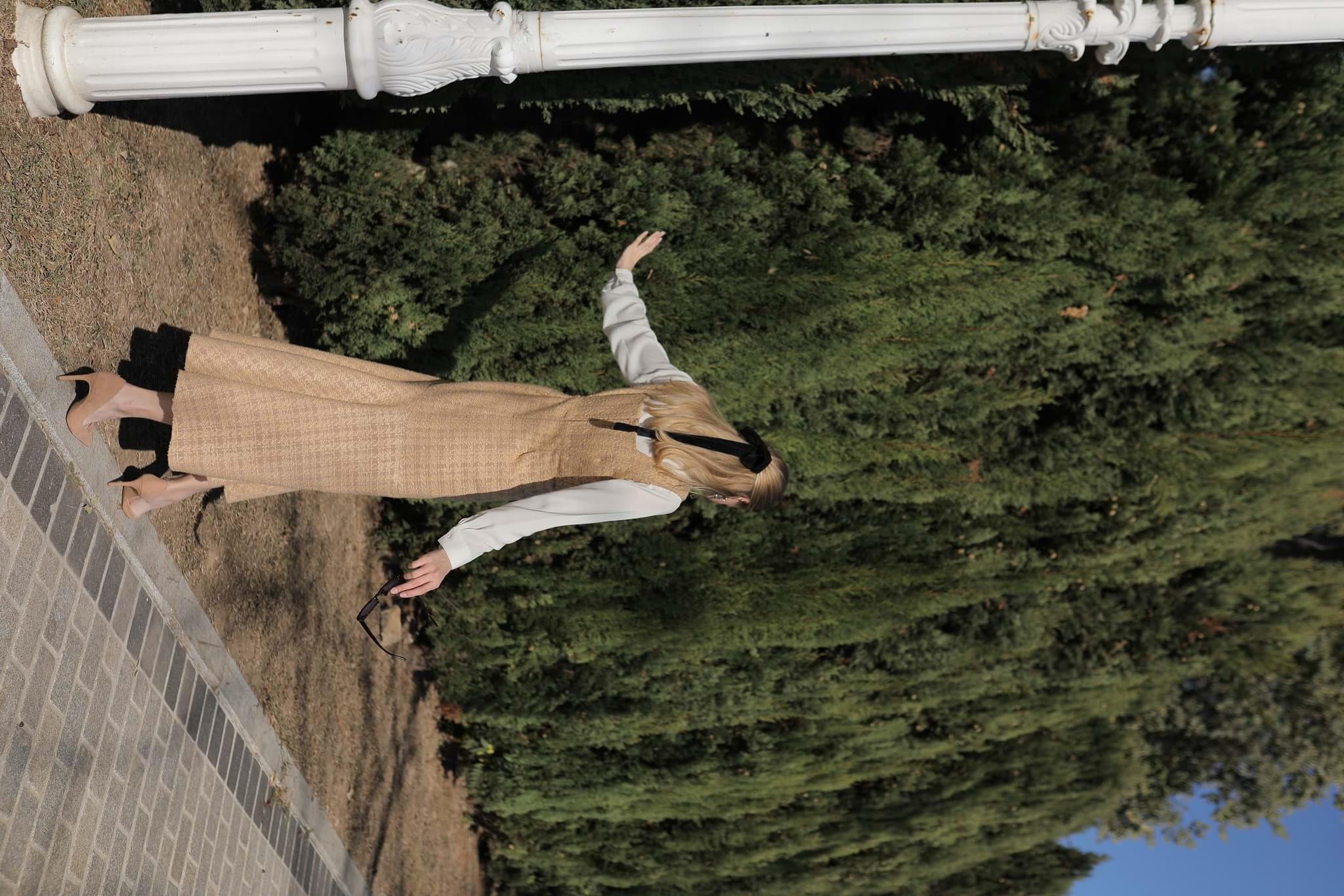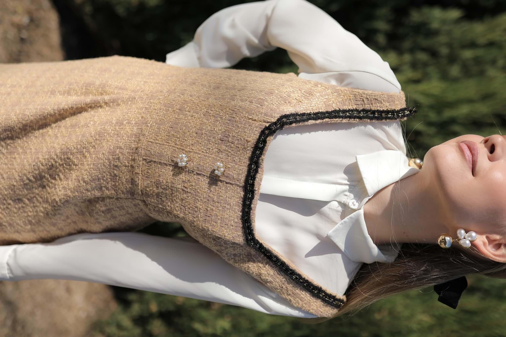 Kamel twit Jile boy 138cm arka fermuarlıdır.