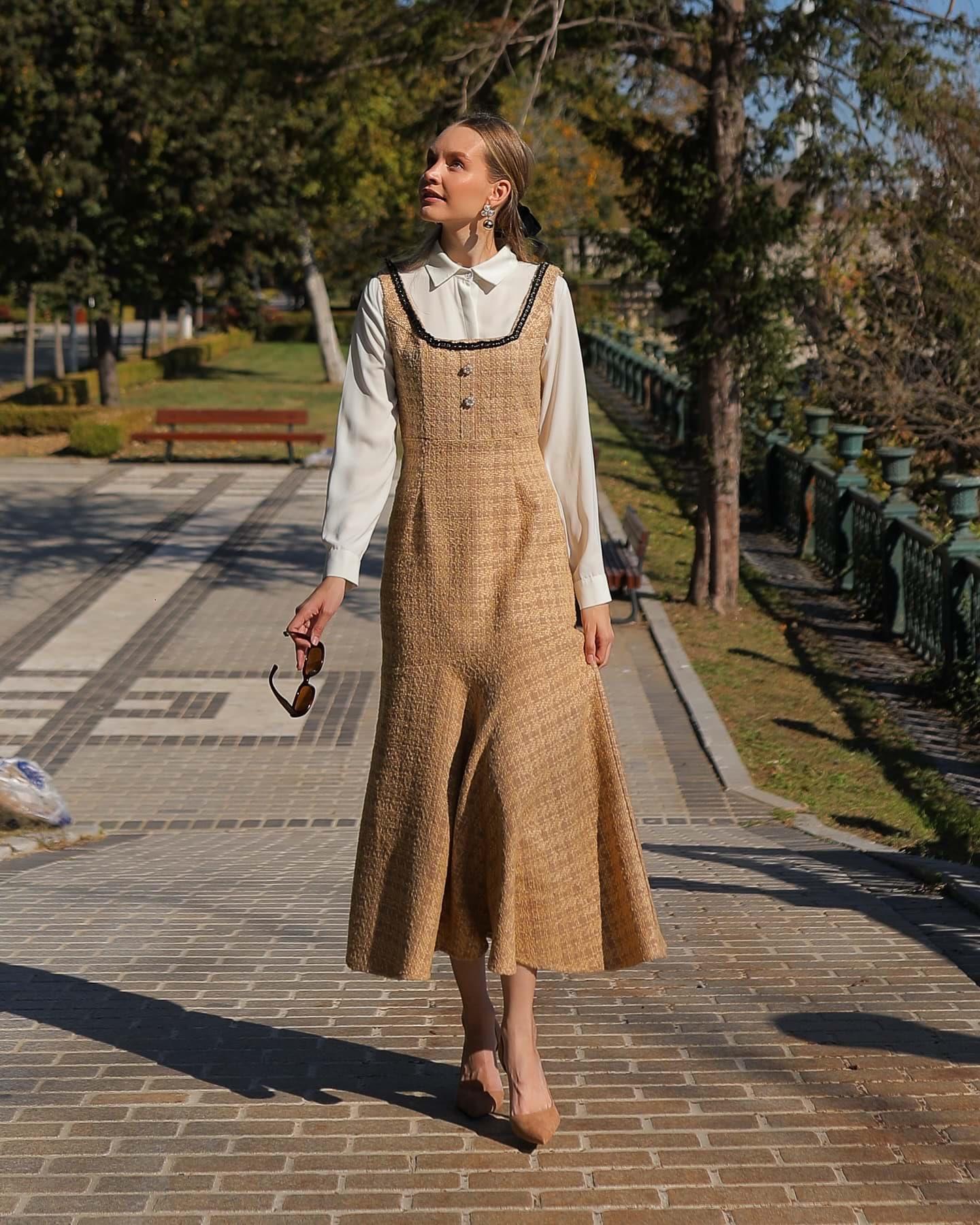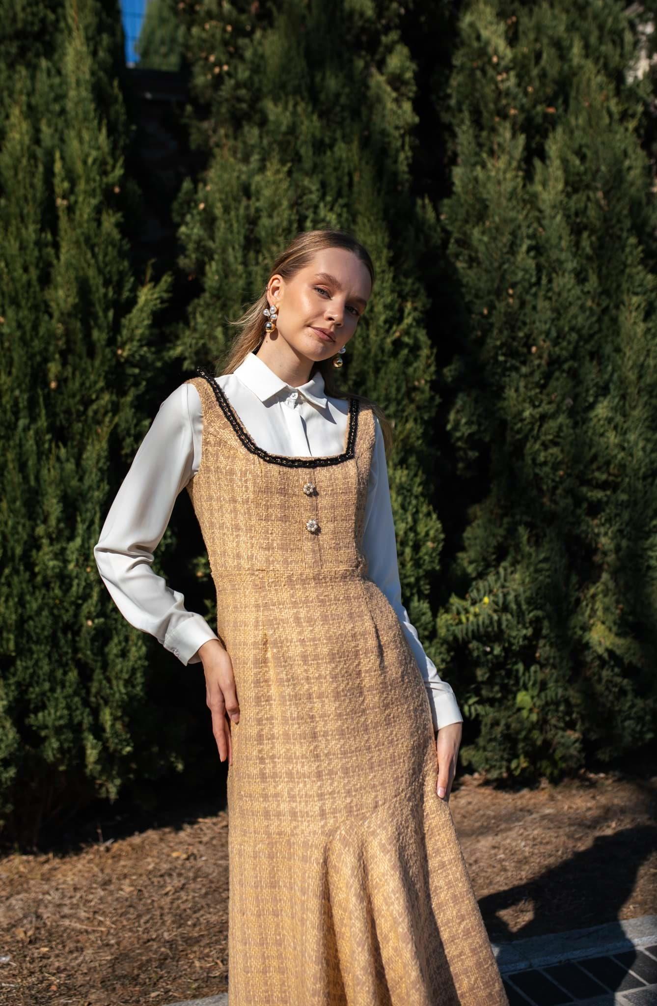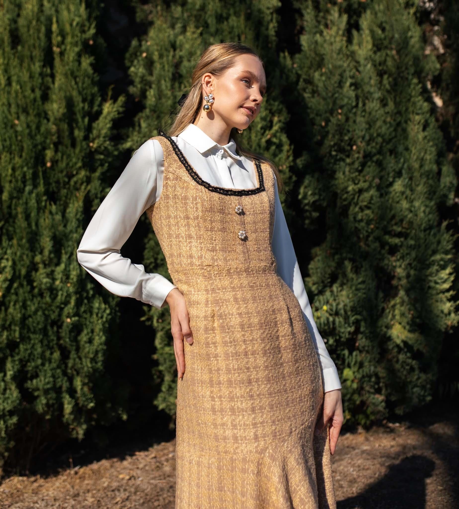 Kamel twit Jile boy 138cm arka fermuarlıdır.