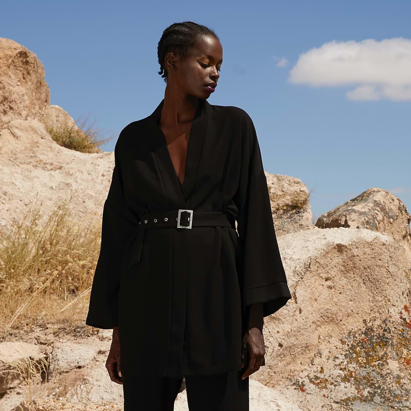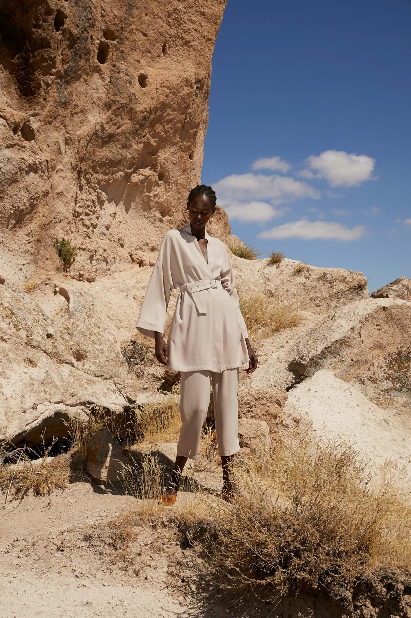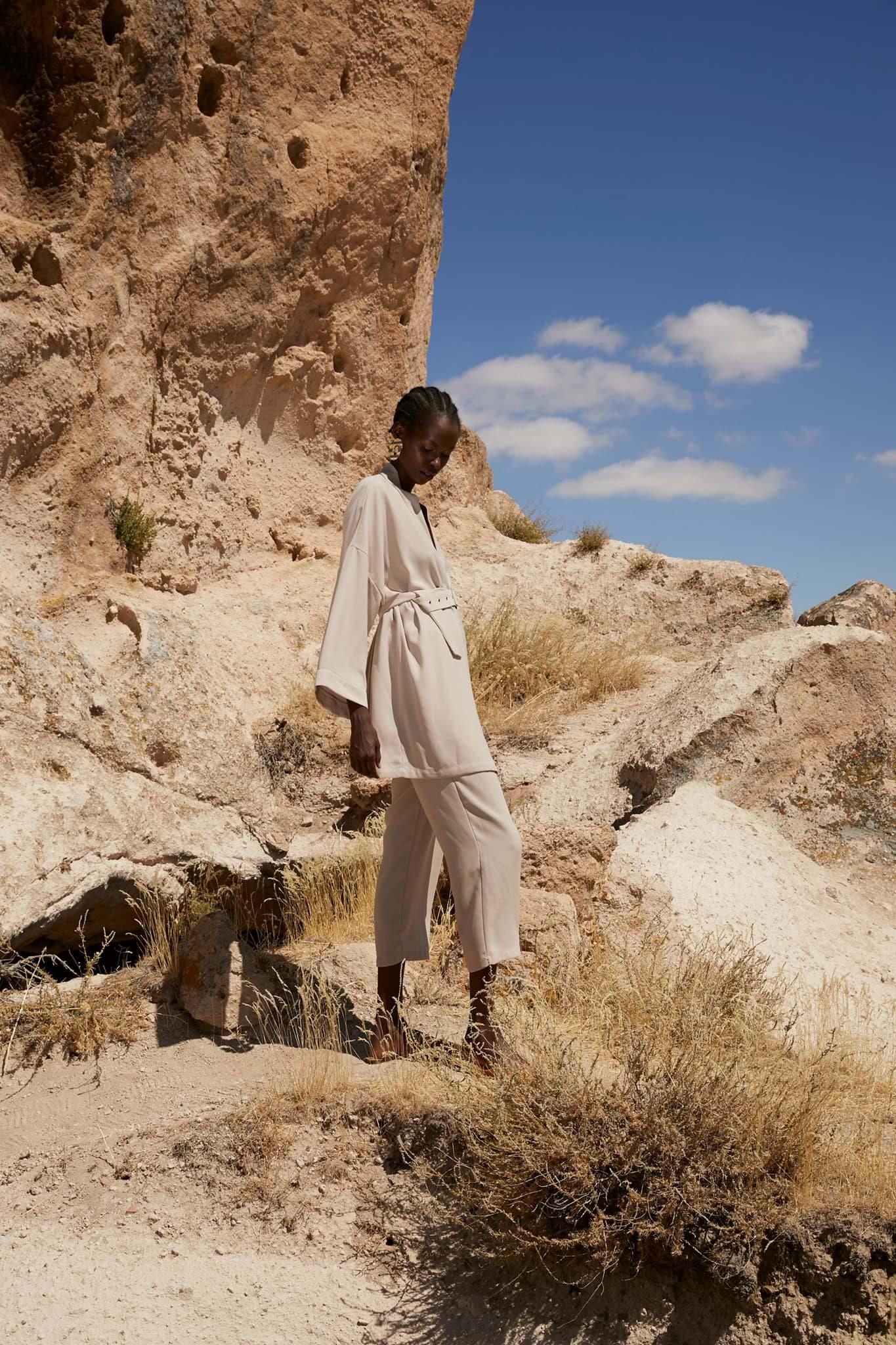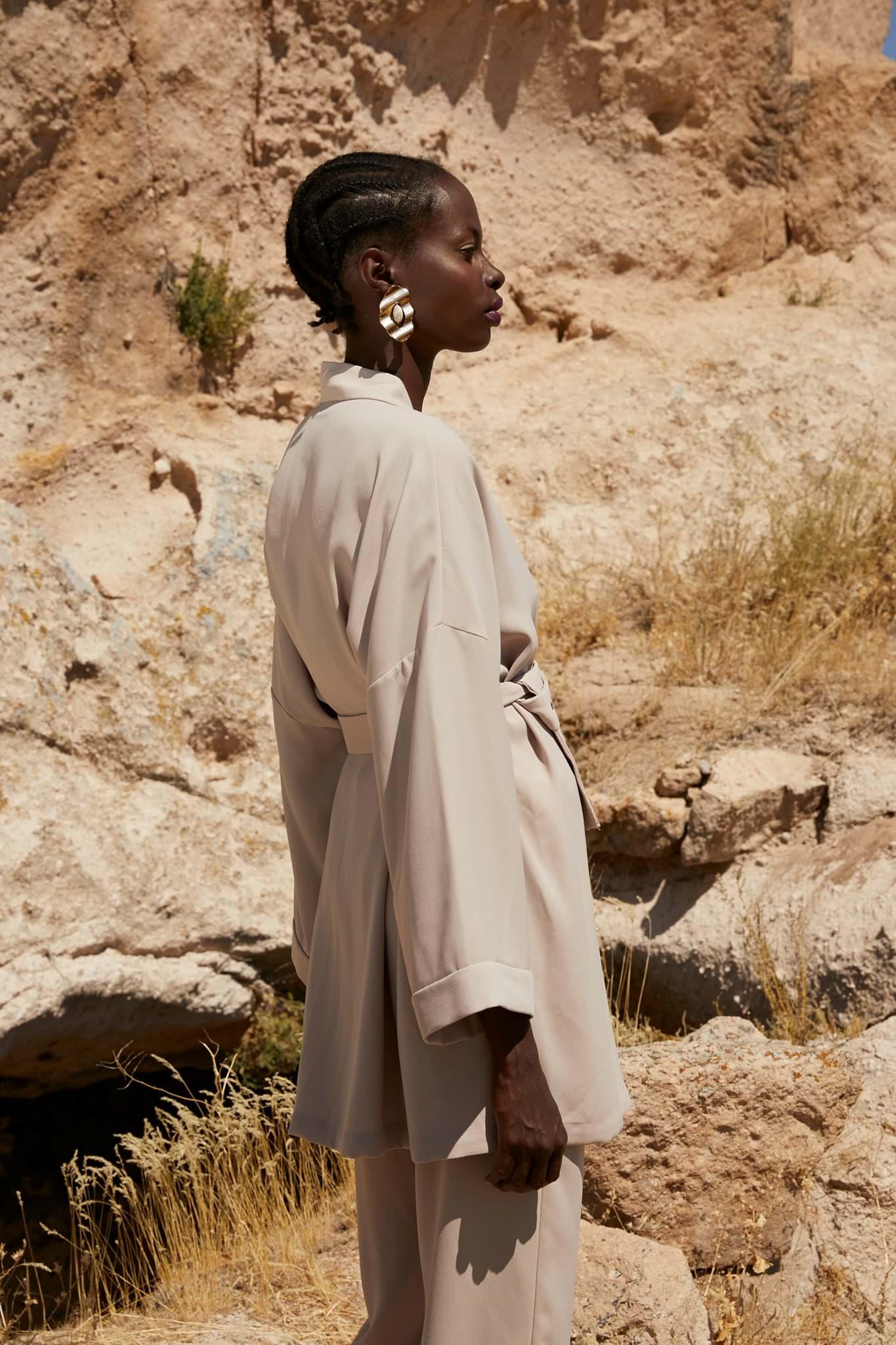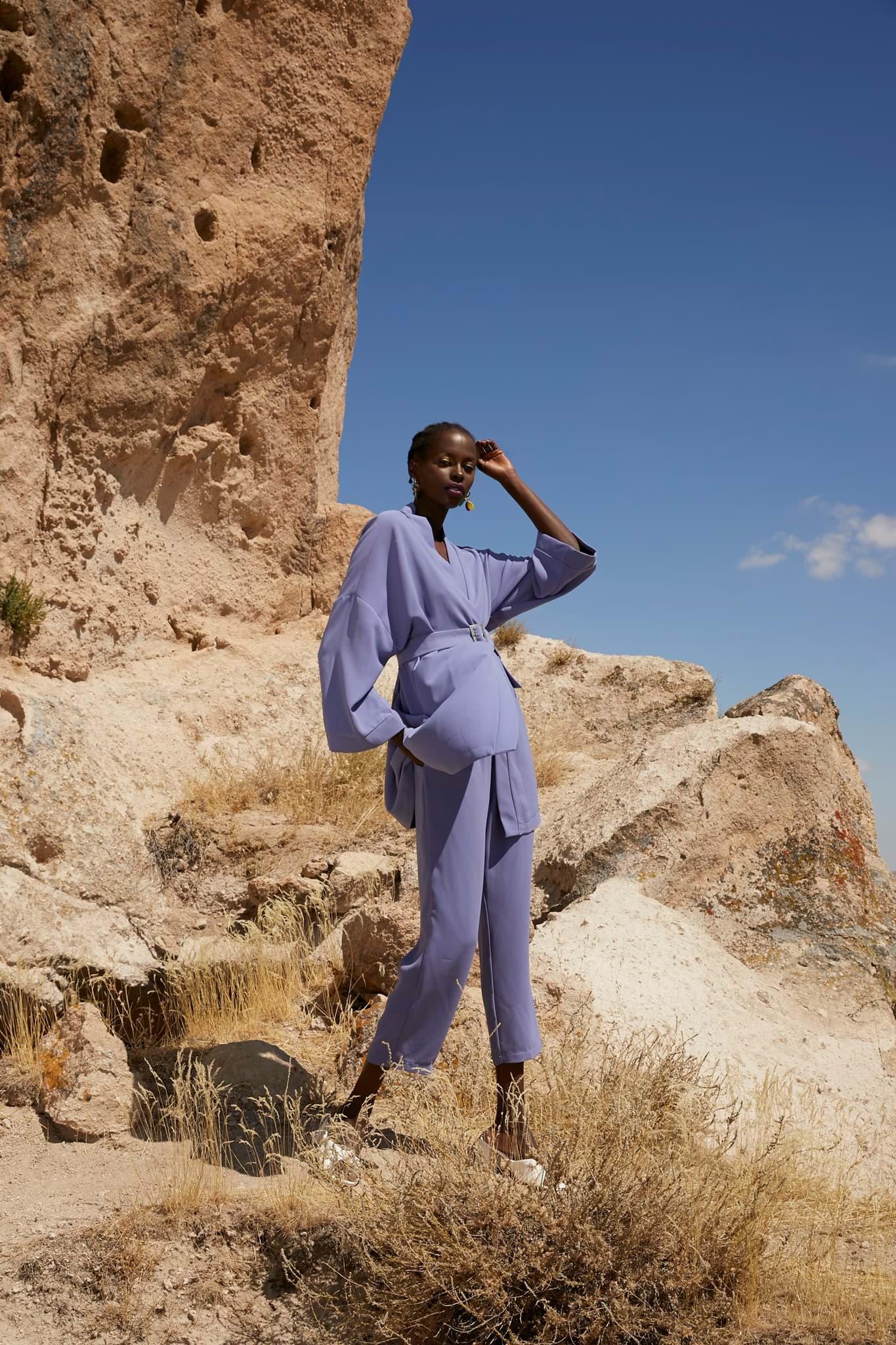 Kimono takım pantolon ayarlanabilen kemer ve kimono dan oluşmakta A kalite Oskar Kreptir. Pantolon boy 95cm beli lastikli yanlardan cep detaylı. Kimono boy 85cm