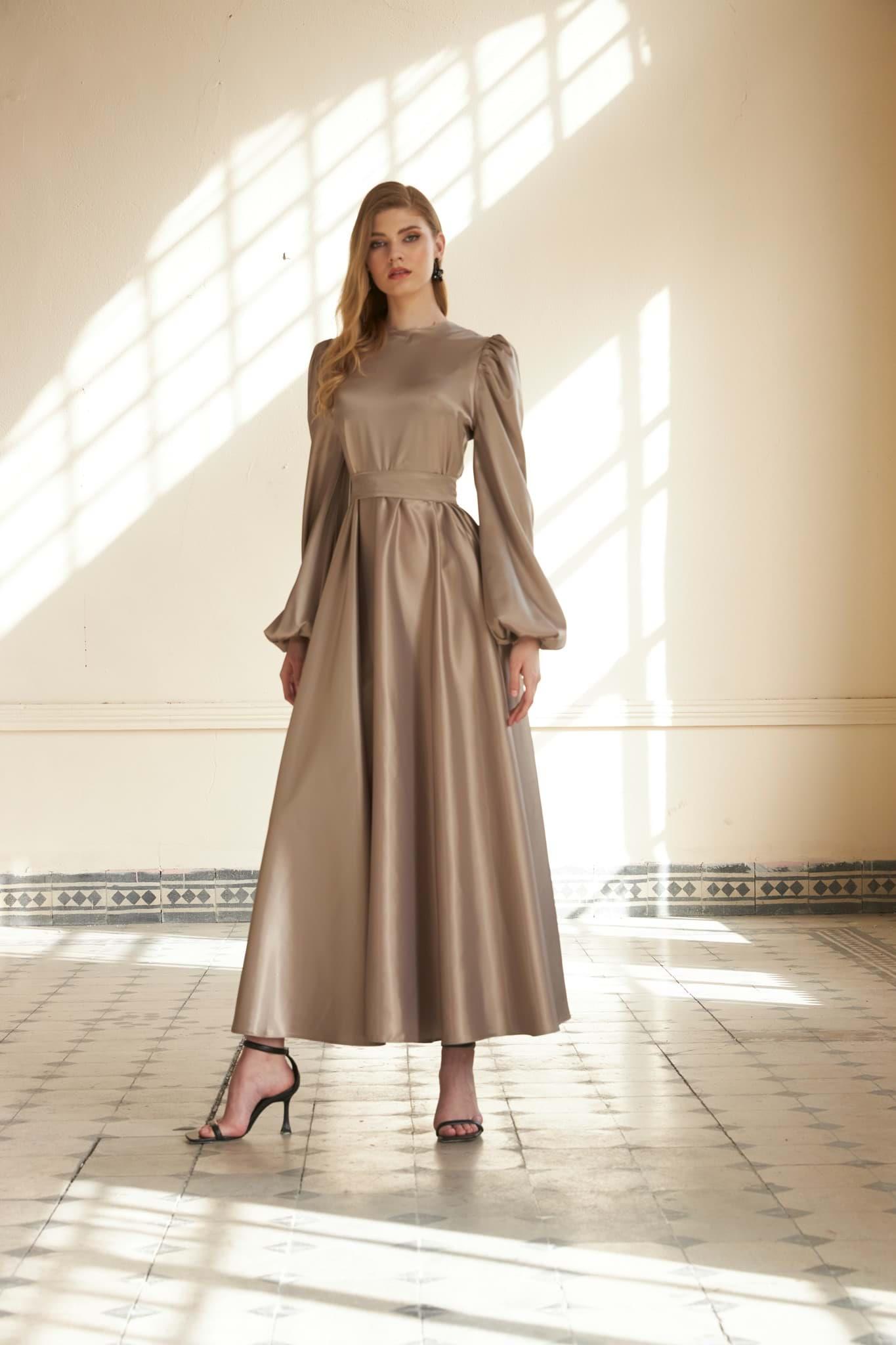 Kuğu özel elbise dökümlü saten kumaş boy 140 cm tam kalıptır 36 44 beden aralığı bedenler mevcut beli lastikli seyyar kuşaklı