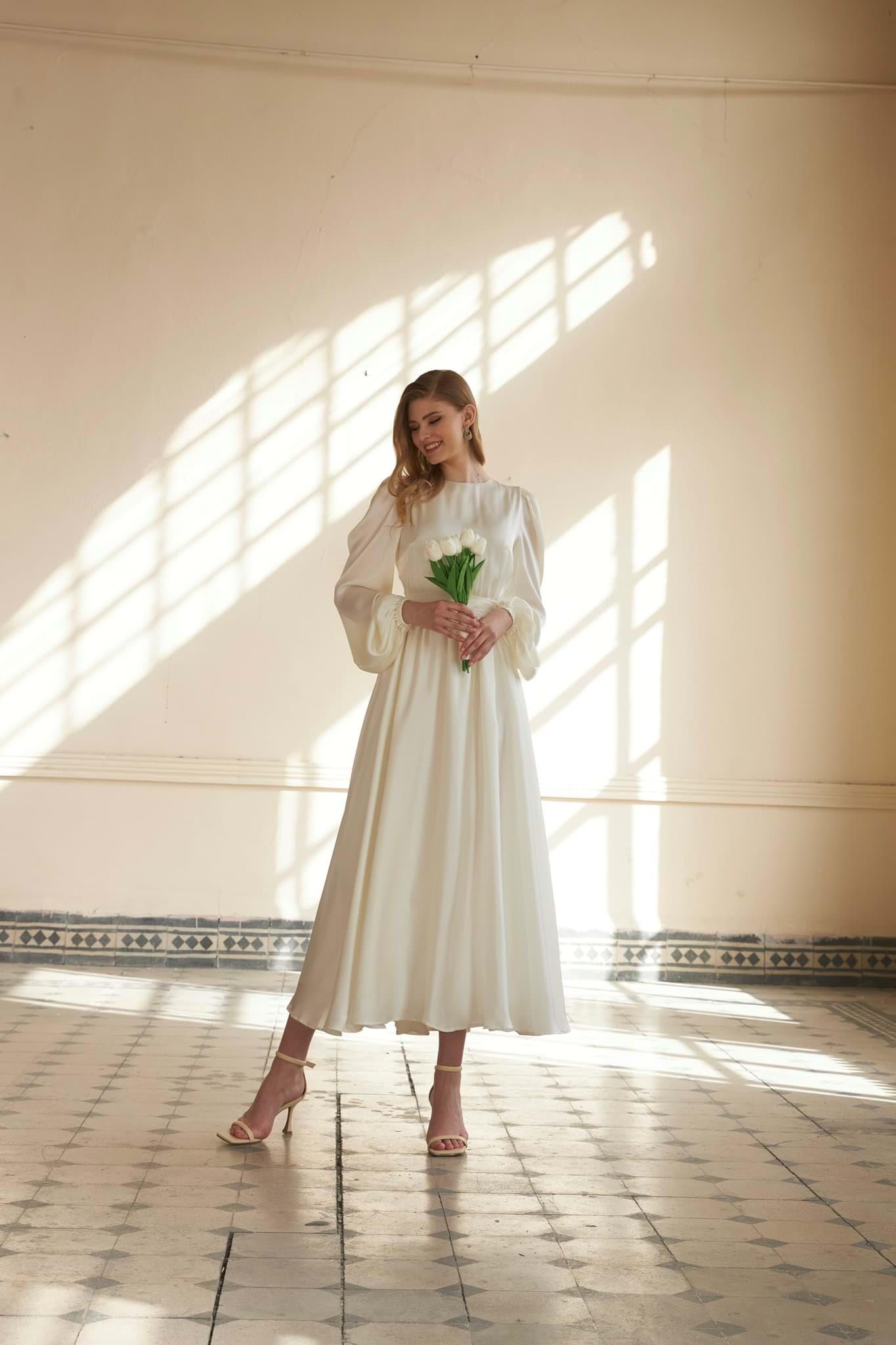 Kuğu elbise beli lastikli seyyar kuşaklıdır yüksek kalite kumaş kullanılmıştır ipek saten ithal kumaştır dökümlü boy 140 cm tam kalıptır kendi bedeninizi rahatlıkla alabilirsiniz astarlıdır iç göstermez Aynı kumaşta şalını web sitemizden sipariş oluşturabilirsiniz Kişiye özel hazırlıyoruz üründe iade değişim yapılmamaktadır.