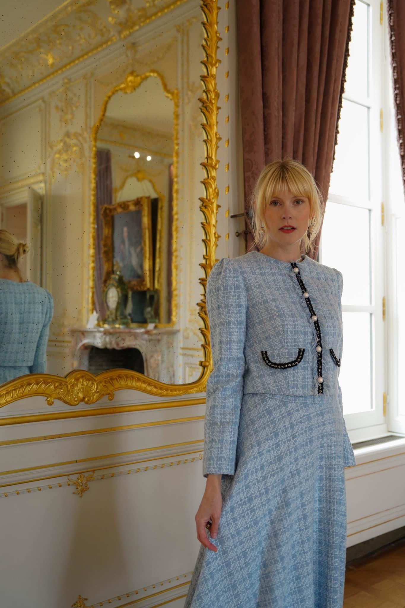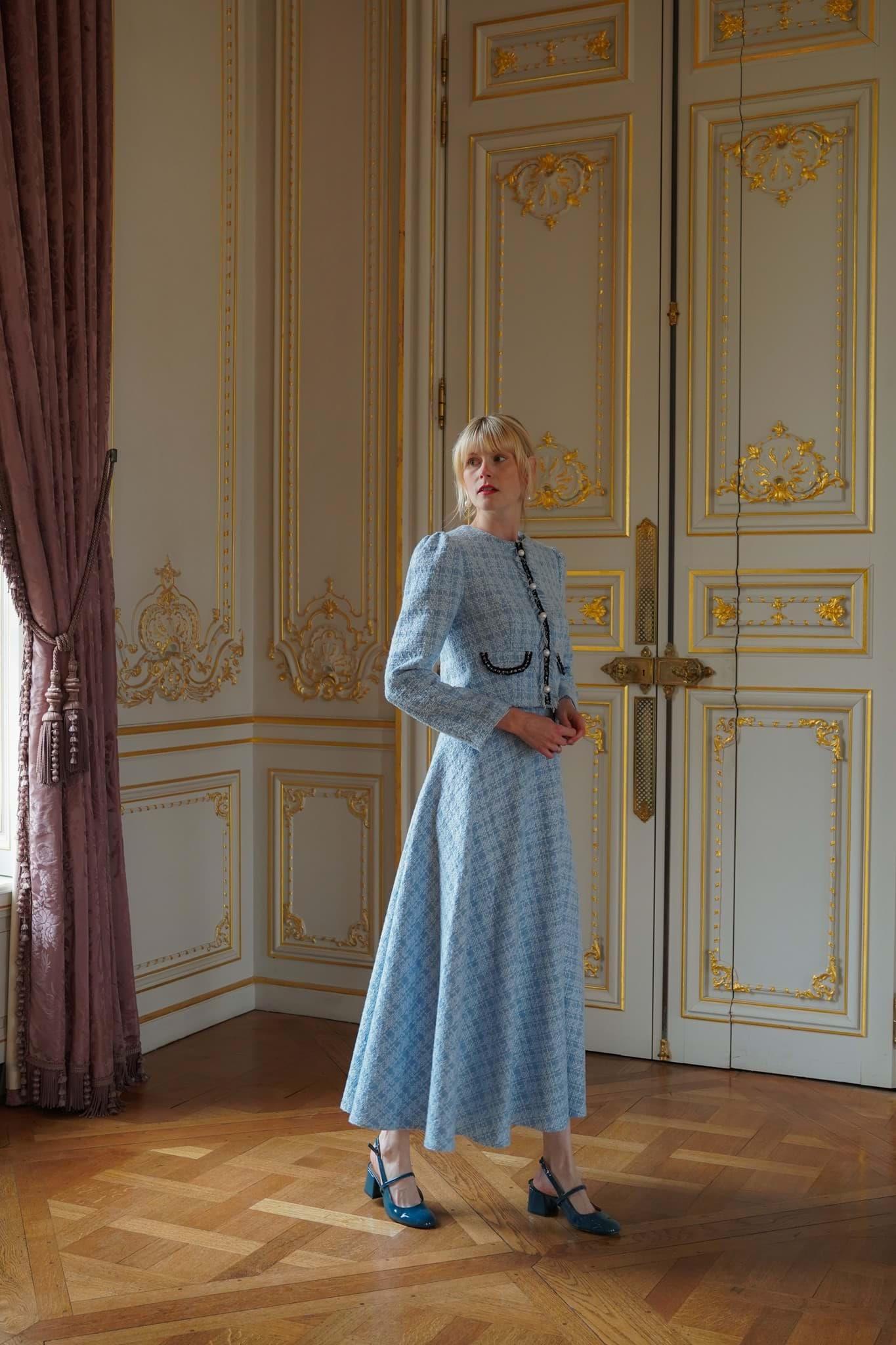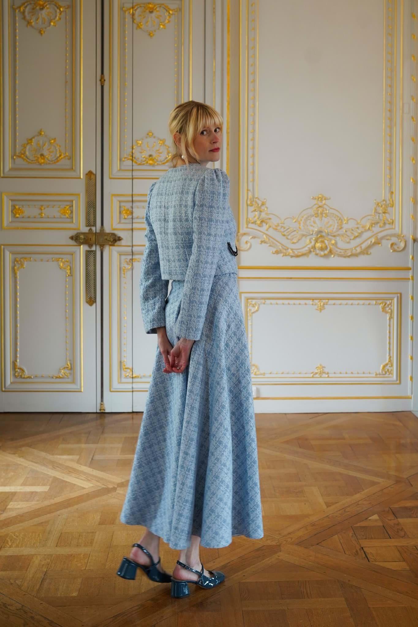 Sofia takım etek ve ceketten oluşan iki parçadır tüvit kumaştır yüksek kalite kumaş kumaştır ceket içten Tellalı ve ipek astarlıdır göğüs düğme aksesuarları inci detaylı Etek boy 93 cm yanlardan lastikli fermuarlı. Ceket boy 45 cm