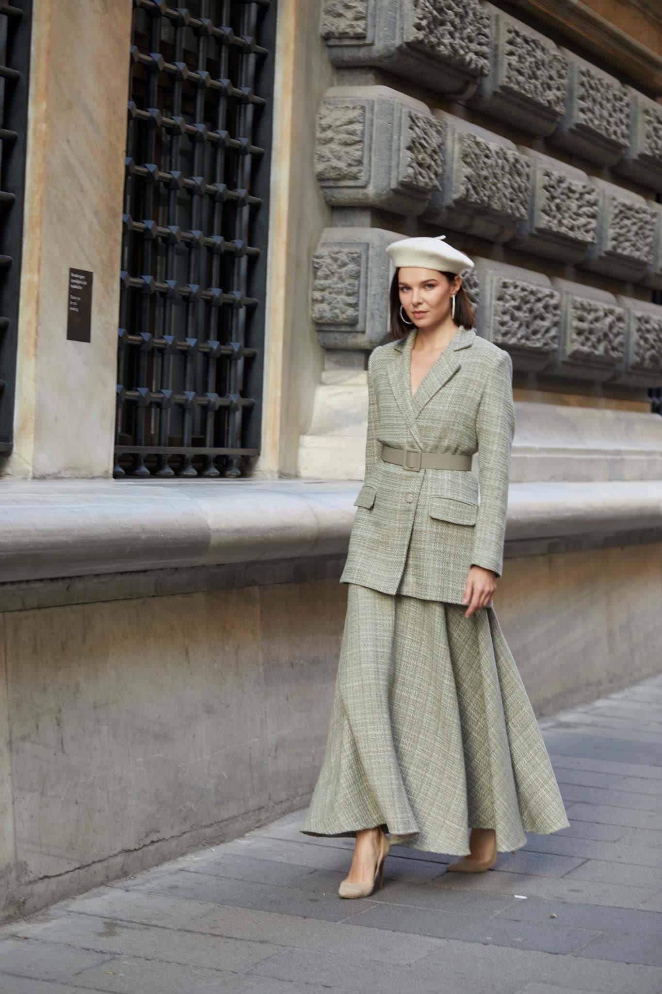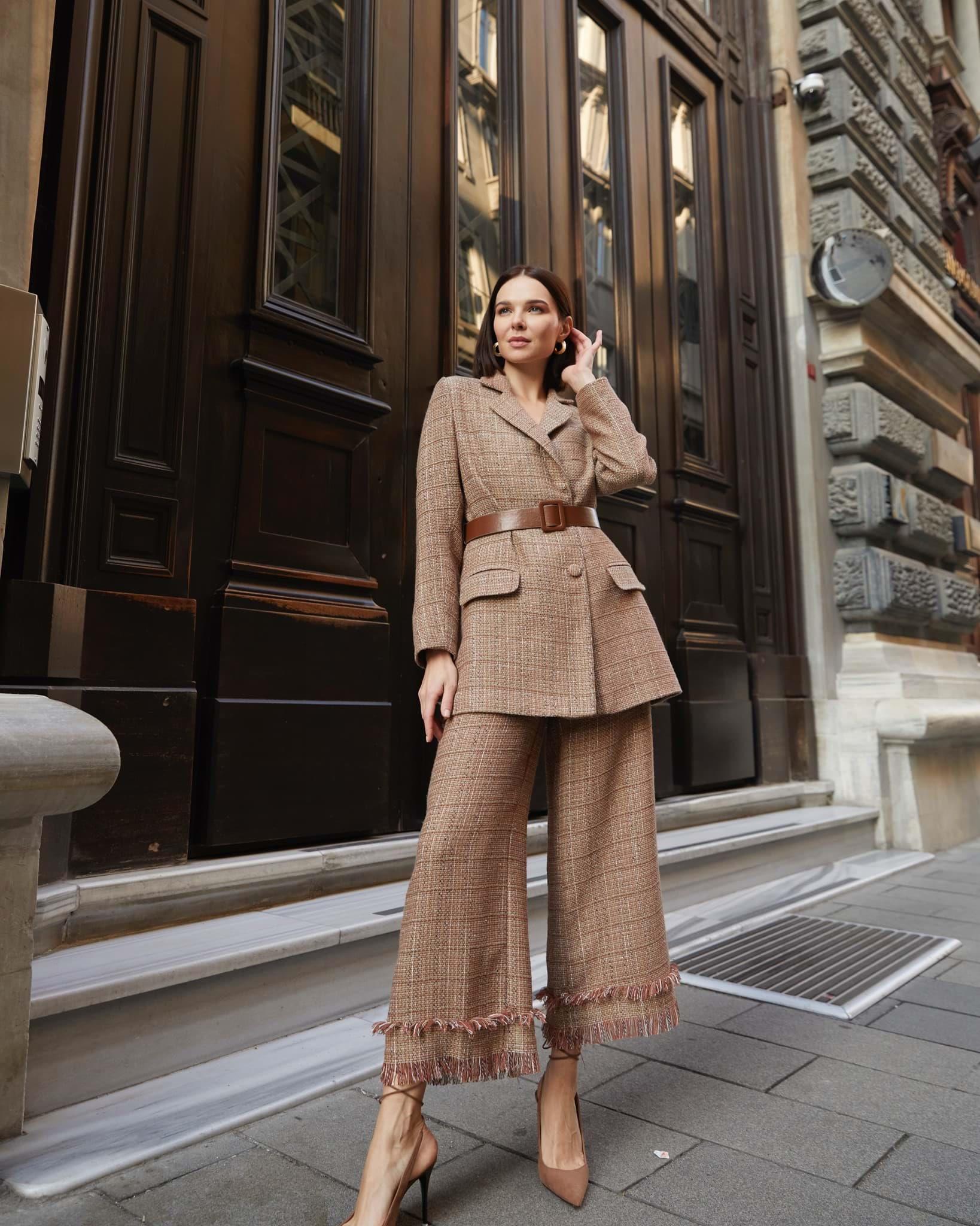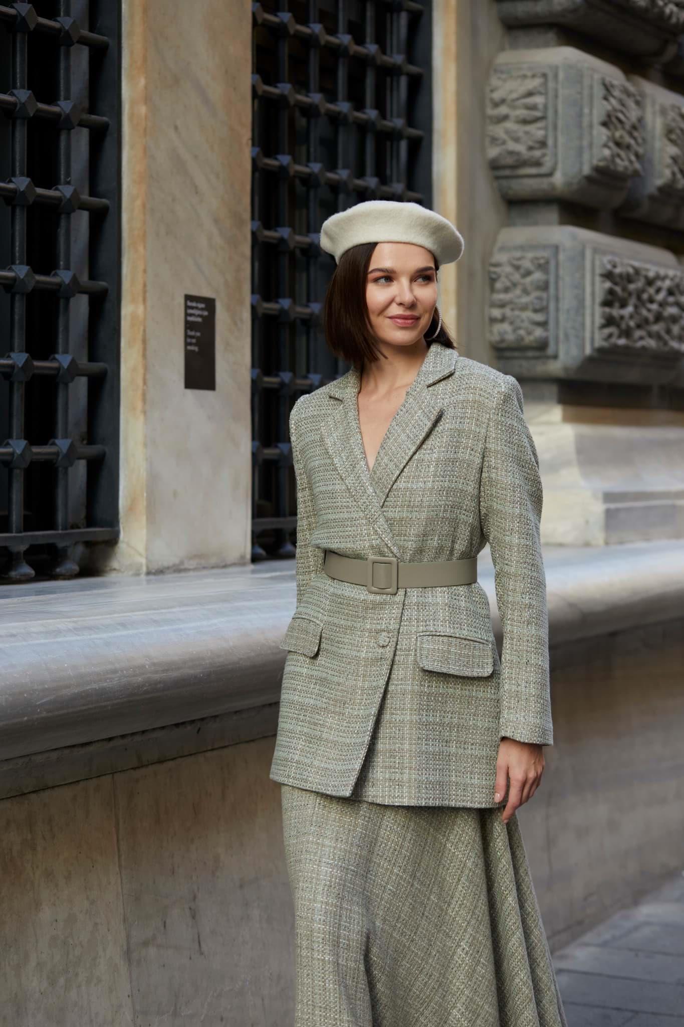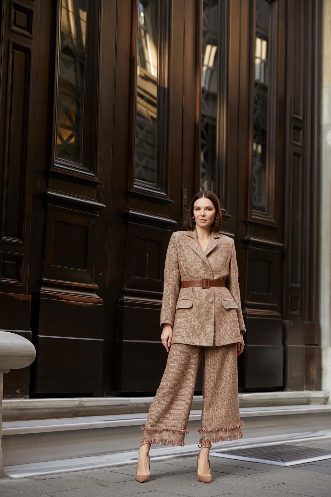 Tüvit ceket boy 84 cm astarlı ipek astar kullanılmıştır Önden cepleri mevcut çift düğme detaylı 1-2 beden olarak satışta 1 beden 36-38 2 beden 40-42