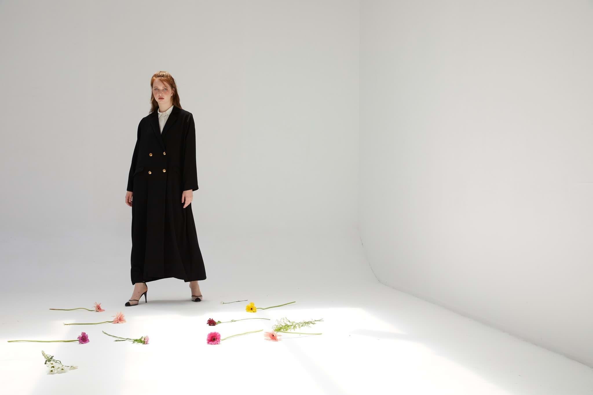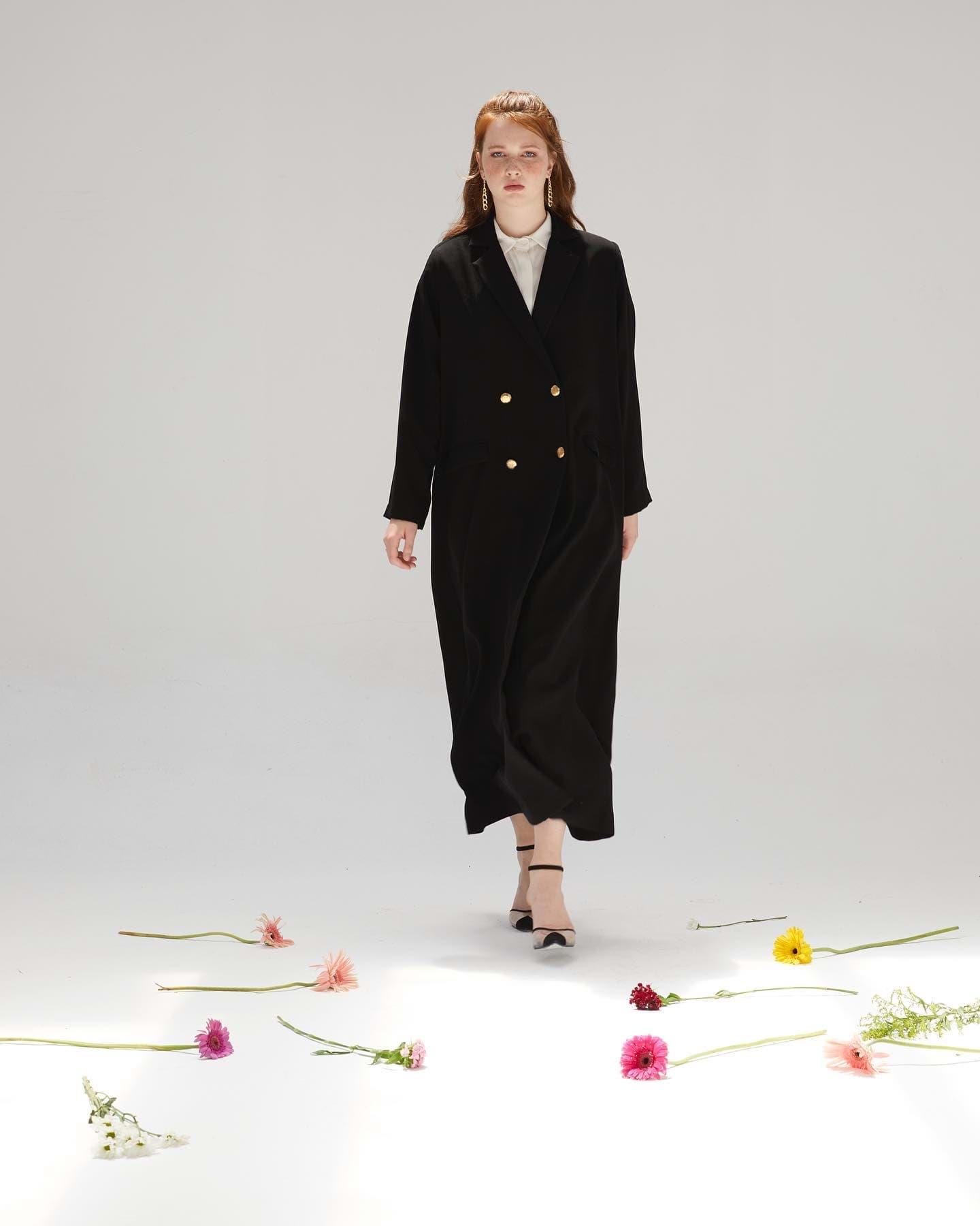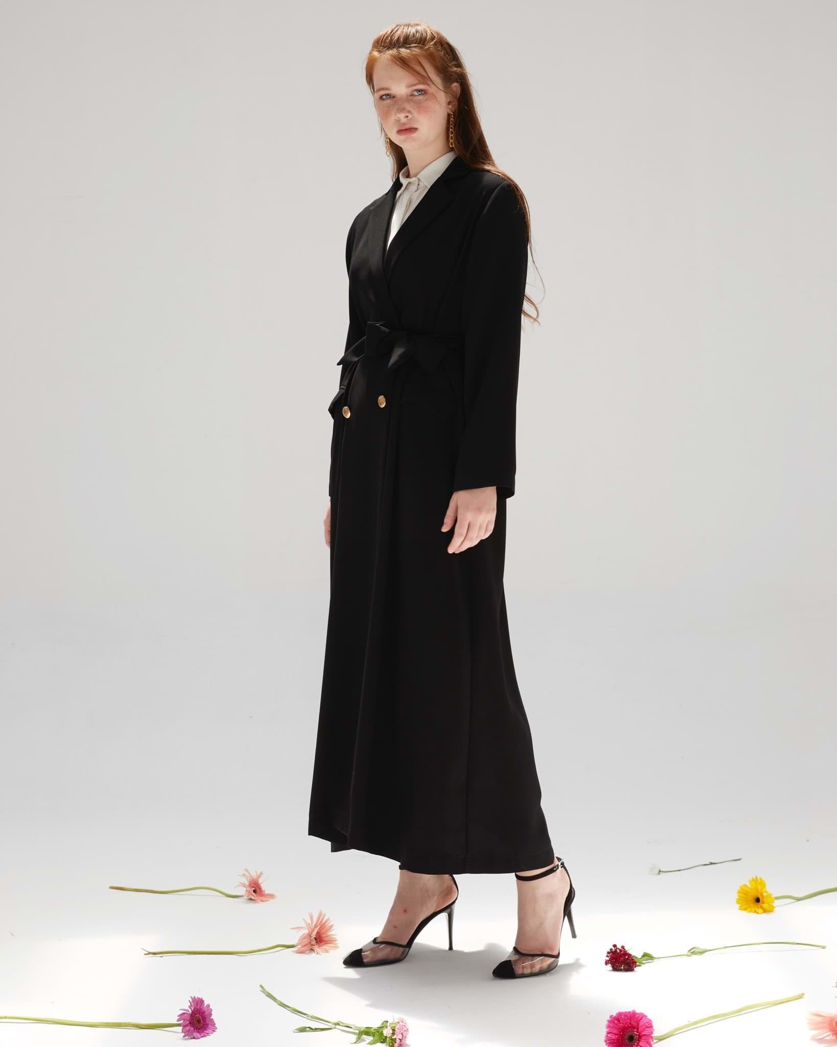 Gold düğme detaylı uzun ceket Boy 140 cm Önü cep detaylı kuşaklı Kumaş Oskar krep 1 2 beden olarak satışta 1 36-38-40 2 40-42-44